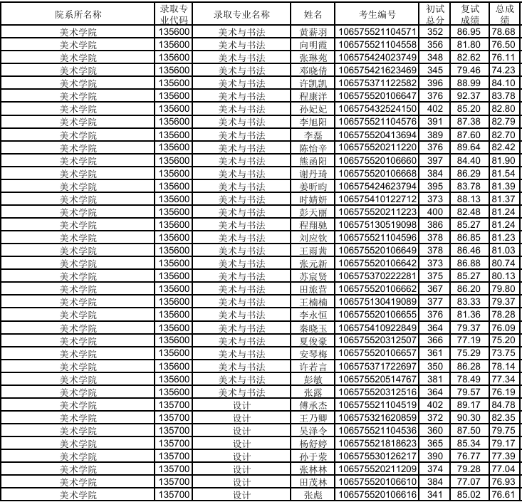 貴州大學(xué)美術(shù)學(xué)院2025年考研擬錄取名單