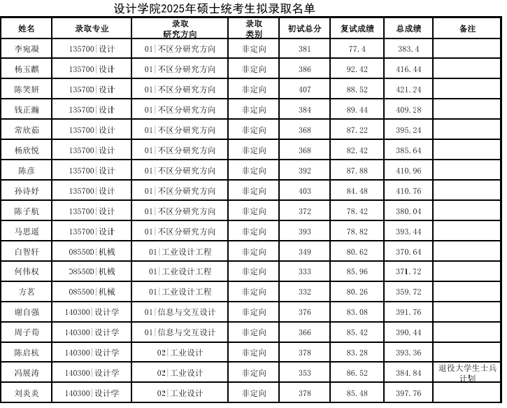 華南理工大學(xué)設(shè)計(jì)學(xué)院2025年考研擬錄取名單